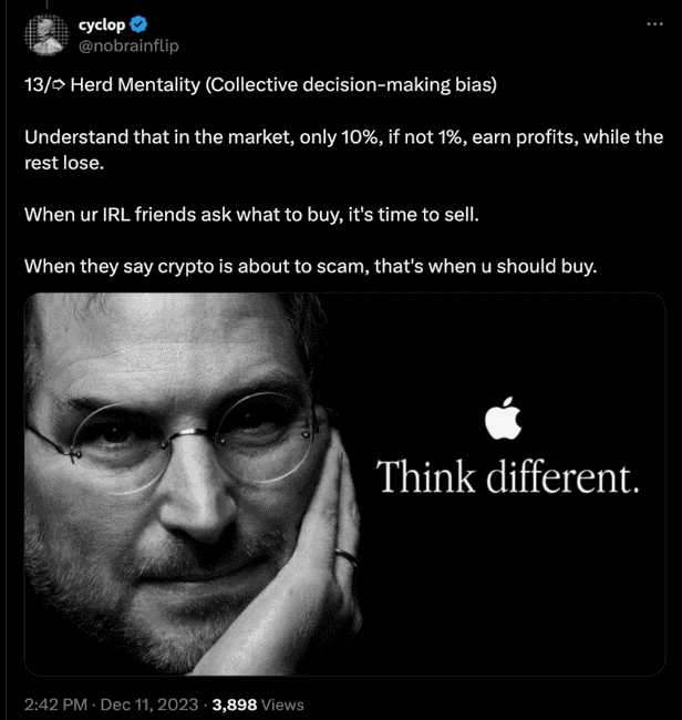 这并不容易,但这种心态是在加密货币的世界中将有利可图的少数人与不成功的众多人区分开来的关键。