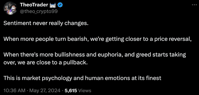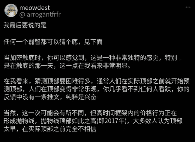 当情绪达到极端时,船通常已经开走了。当你的推特 / 社群媒体上充斥著市场顶部的多头或市场底部的空头时,可能已经为时过晚去行动。