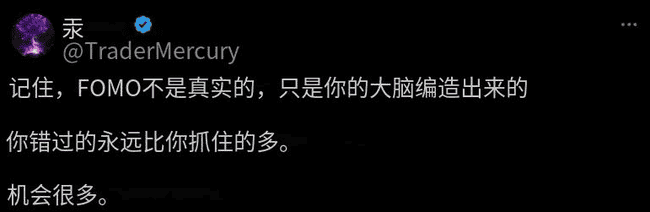 总会有那个你没有买进的币种暴涨 100 倍,或是你卖得太早的那个币种。这就是市场的本质。关键是不要让 FOMO 主导你的行动。要有纪律,坚持执行你的策略,并相信总会有新的机会。